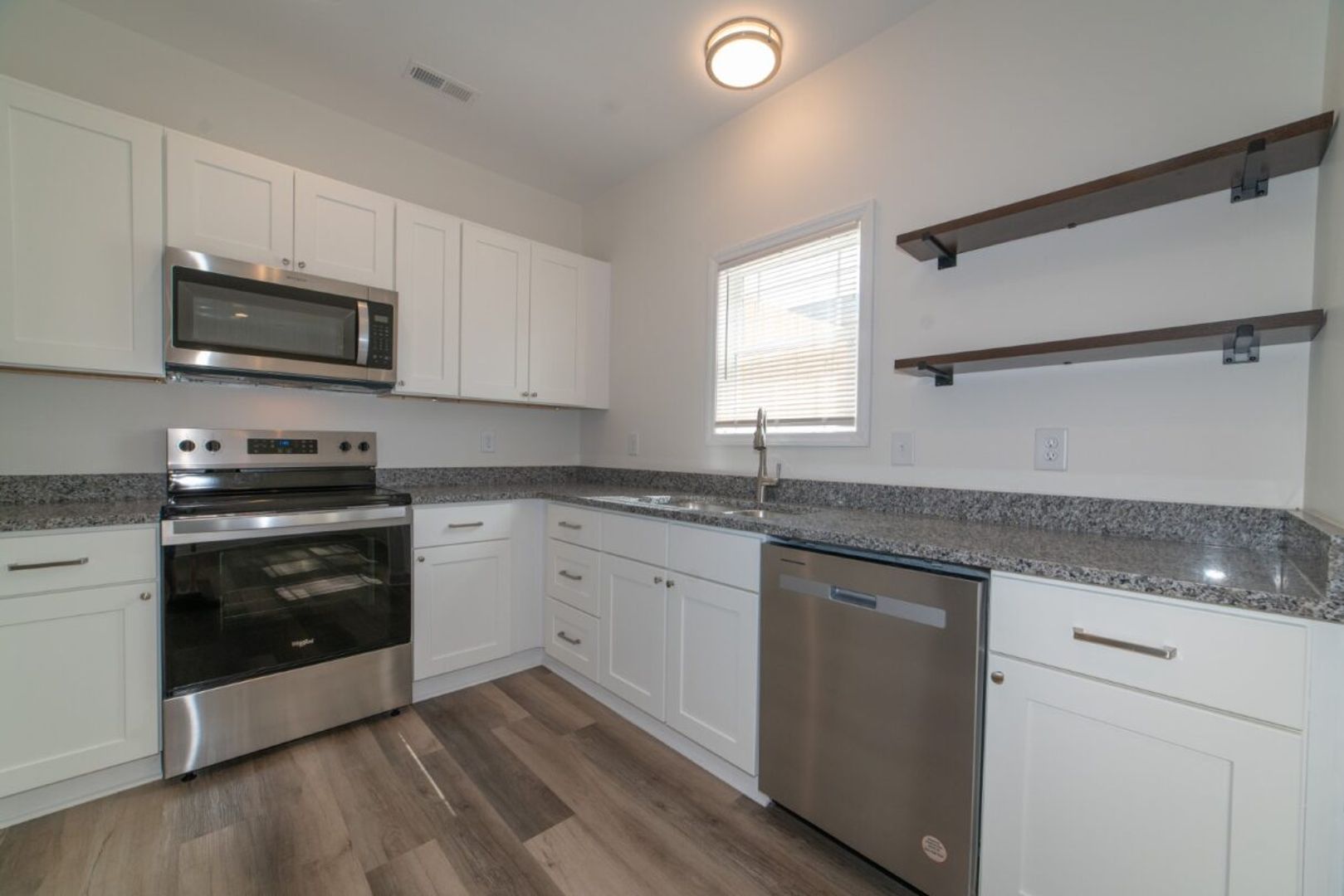 This spacious 3-bedroom, 2.5-bathroom home offers comfort and style with its stunning granite countertops, durable laminate vinyl flooring, and large closets. The open-concept layout is perfect for entertaining, and the kitchen features an above-range microwave, dishwasher, and a washer/dryer in-unit for ultimate convenience.