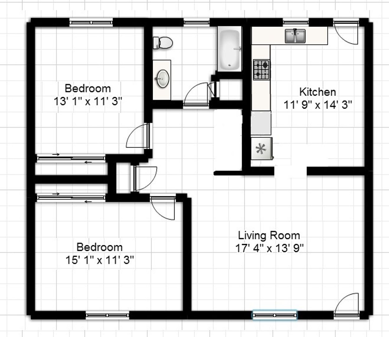 2 Bedroom 1 Bath Top Floor Unit