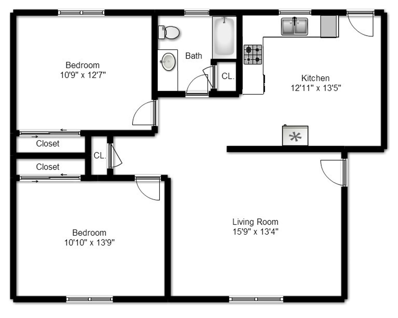2 Bedroom 1 Bath 2nd Floor Unit
