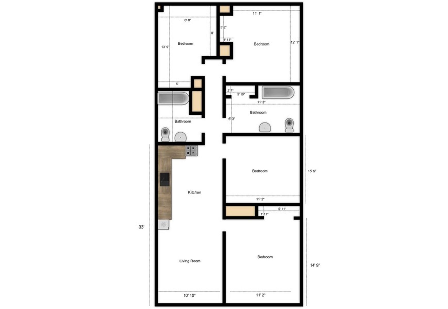 Recently remodeled 4-bedroom duplex, lower unit