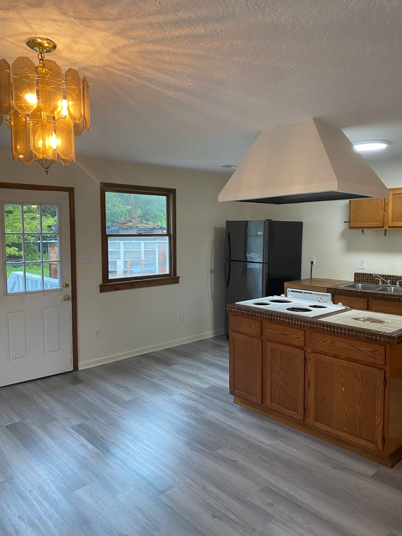 Welcome to the recently remodeled 4-bedroom duplex, upper unit, located in the heart of Blacksburg, VA. This spacious home boasts four bedrooms and three full bathrooms, offering ample space for comfortable living. The interior features a blend of hardwood and laminate flooring, adding a touch of elegance to the overall aesthetic. The kitchen is a chef's dream with a convenient island and a dishwasher for easy clean-up. The home also comes with a washer and dryer, ensuring your laundry needs are met without the hassle of a laundromat. The central heat and air system guarantees year-round comfort. The property is pet-friendly and features a large yard, perfect for your furry friends to roam and play. Enjoy the outdoors from your own patio/deck or take advantage of the off-street parking in your own driveway. The location is a bonus, with close proximity to Lewis Gale Medical Center. Large windows throughout the home allow for plenty of natural light, creating a bright and welcoming atmosphere. Lawn care is included, allowing you more time to enjoy the comforts of your new home. This duplex is more than just a place to live, it's a lifestyle.