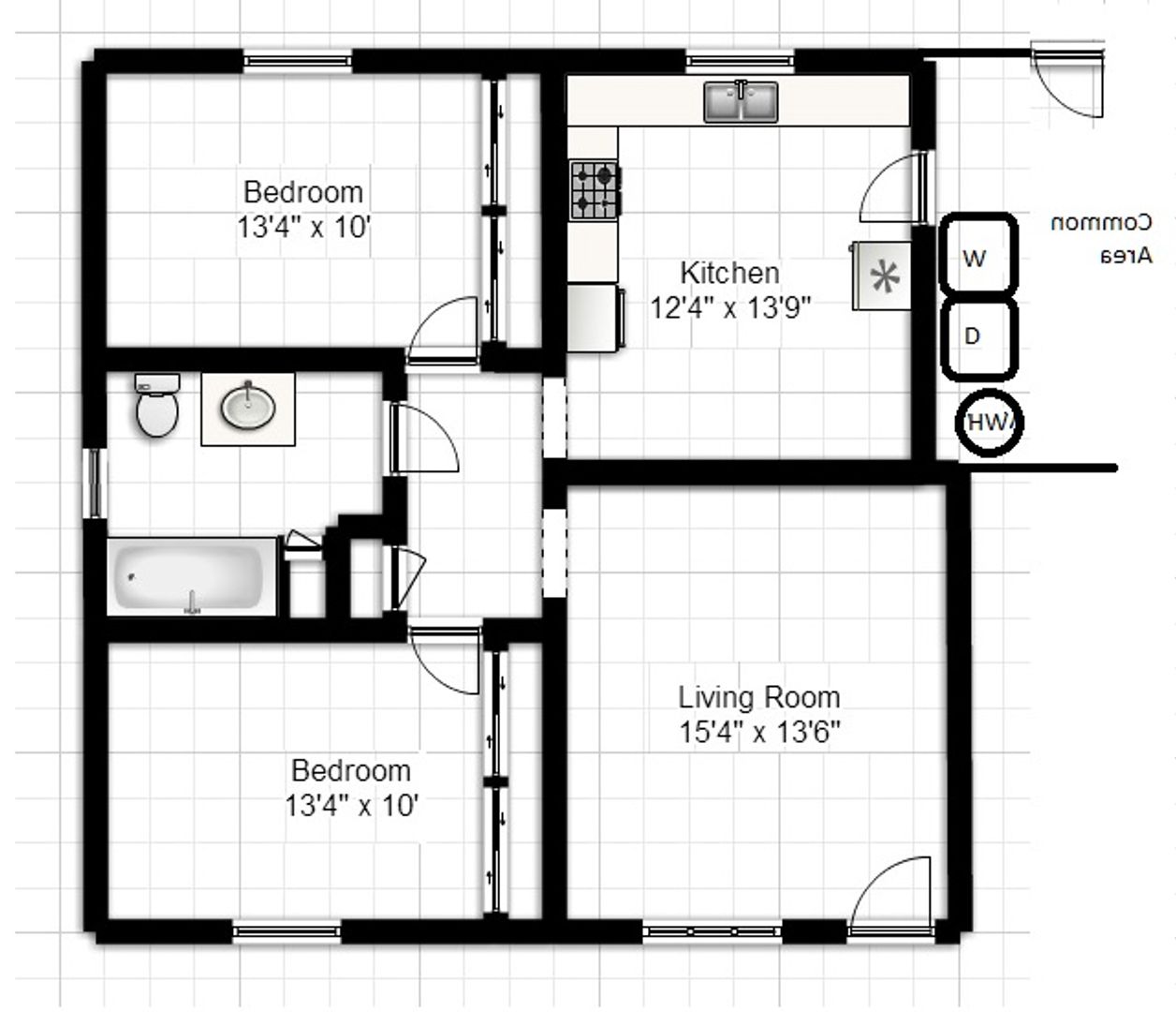 2 Bedroom 1 Bath Top Floor Washer/Dryer
